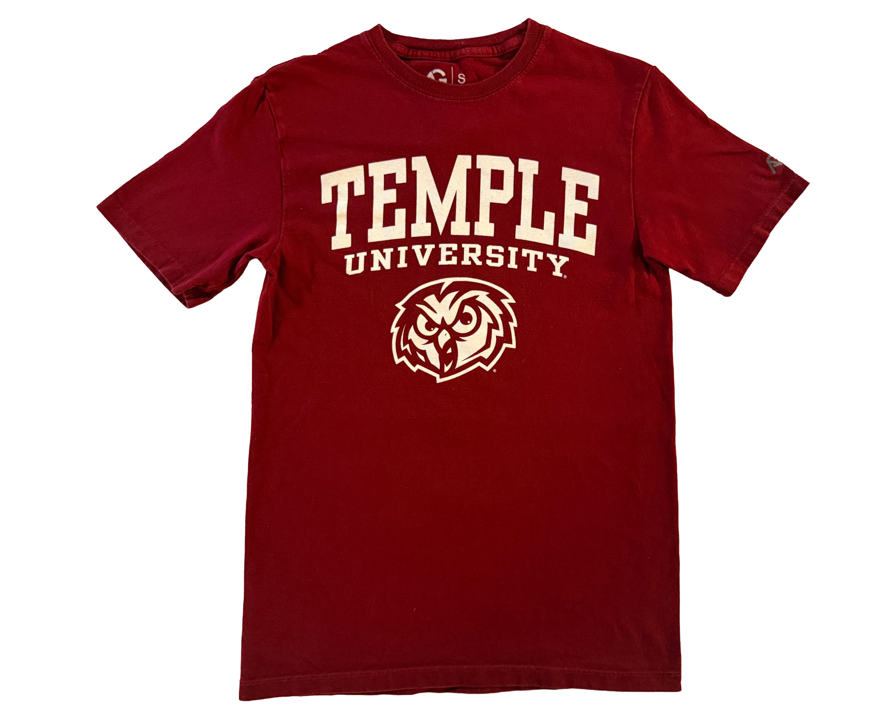This Temple University t-shirt features the school’s owl emblem and classic collegiate typography, printed on a deep red base that nods to Temple’s long-standing colour identity. Founded in Philadelphia in 1884, Temple grew from a night school into one of the city’s largest and most influential public research universities, with the owl adopted as its mascot in the early 20th century as a symbol of wisdom and perseverance. The design reflects the straightforward campus merchandise style common across American universities in the 2000s and 2010s, made to be worn casually by students, alumni, and supporters.