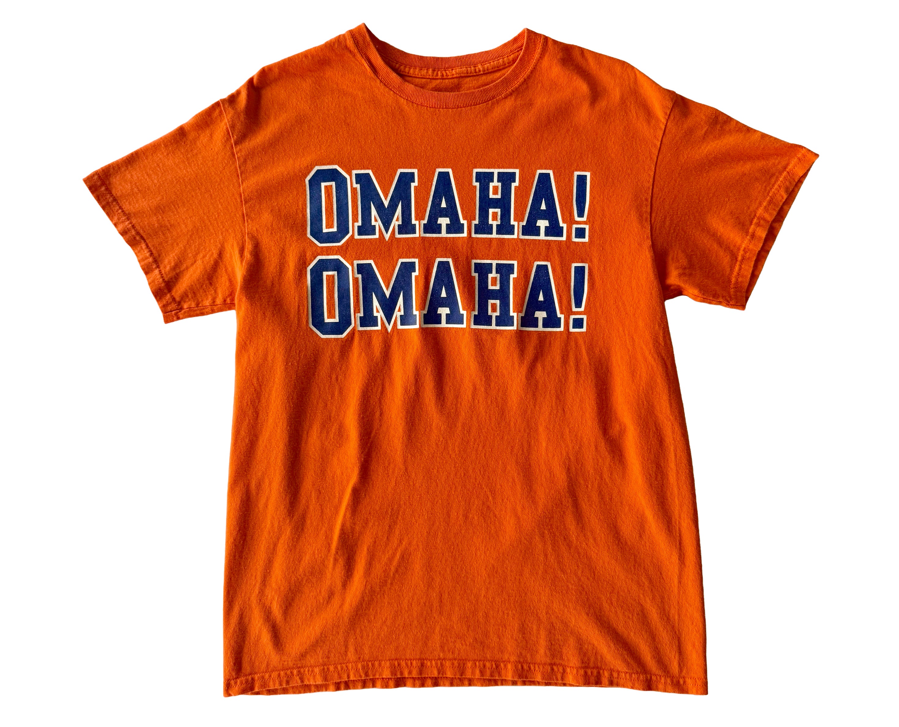 This bold orange “Omaha! Omaha!” t-shirt brings instant energy with its double shout design, a phrase forever linked to American football legend Peyton Manning’s famous play-calling. The vibrant orange base with navy and white block lettering makes it a standout piece, perfect for fans of the game or anyone who loves statement tees. Made by Point Sportswear from 100% cotton, this shirt offers a soft and breathable fit that works well for casual wear, sports events, or layering. With its clean print and classic short sleeve style, it’s a nostalgic nod to gridiron culture and an eye-catching piece for everyday wear.