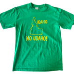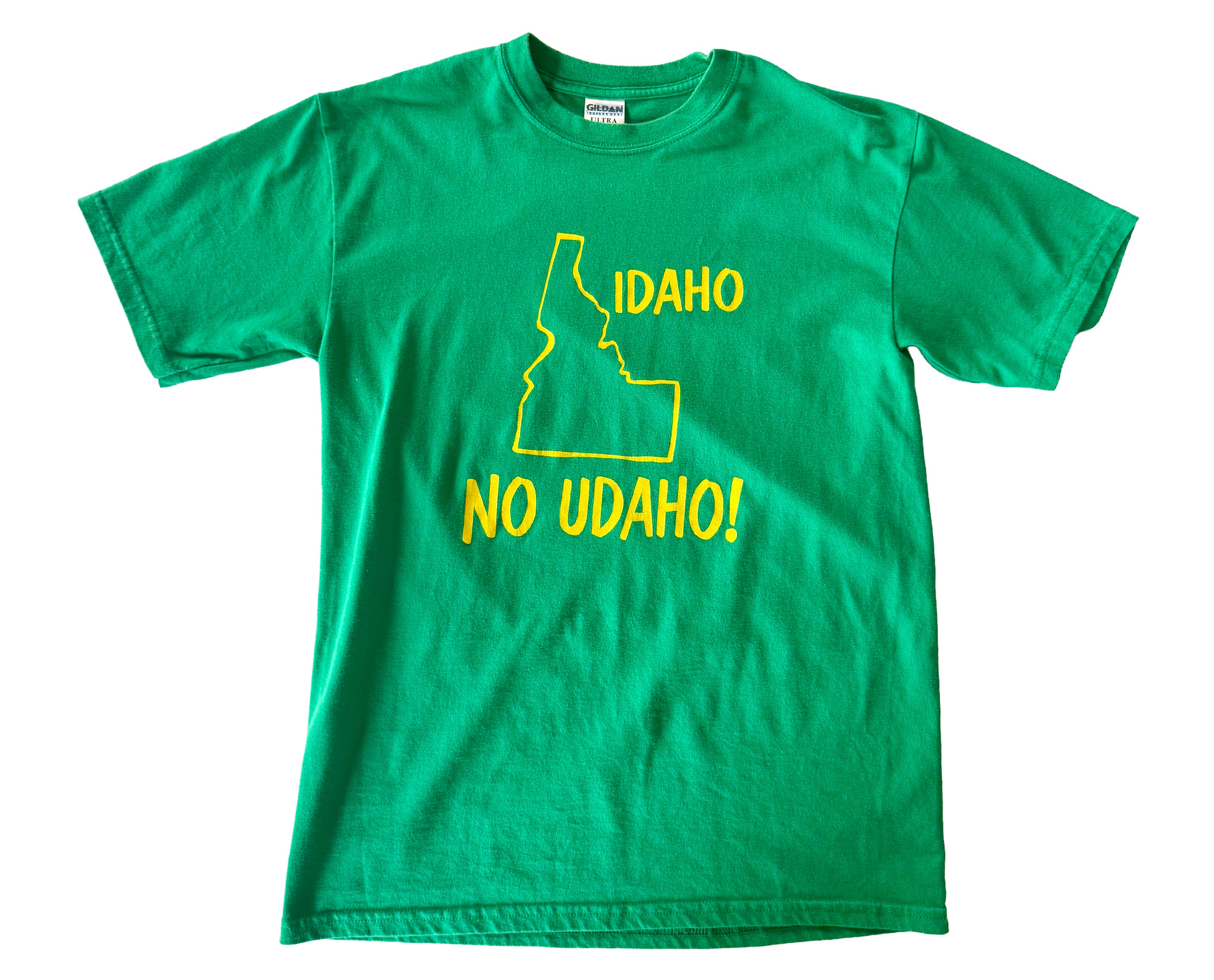This green “Idaho No Udaho” T-shirt delivers playful humour with bold yellow print. Featuring the outline of the state of Idaho and a cheeky slogan, it’s a quirky nod to American geography and wordplay. Made from a soft 50/50 cotton-polyester blend by Gildan, this tee is durable, comfortable, and perfect for casual wear. With its bright colour and standout design, it’s a great conversation starter and a fun addition to any vintage-inspired collection.