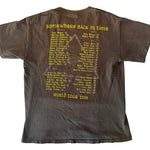 This Iron Maiden Somewhere Back in Time World Tour 2008 t-shirt captures the band’s legendary live presence and their iconic Egyptian-inspired artwork. Printed on a black M&O Knits Heavy Weight tee, the front features a bold graphic of Eddie surrounded by ancient ruins, while the back lists the full 2008 tour stops across the globe. Worn-in with multiple small holes, including on the back, hem, sleeve, and armpit, this shirt carries the authentic marks of age that fans of true band tees will appreciate. Originally made from 100% preshrunk cotton, it has a heavyweight feel and classic fit. A rare find for collectors and Iron Maiden devotees, this shirt embodies the energy of one of the band’s monumental tours.