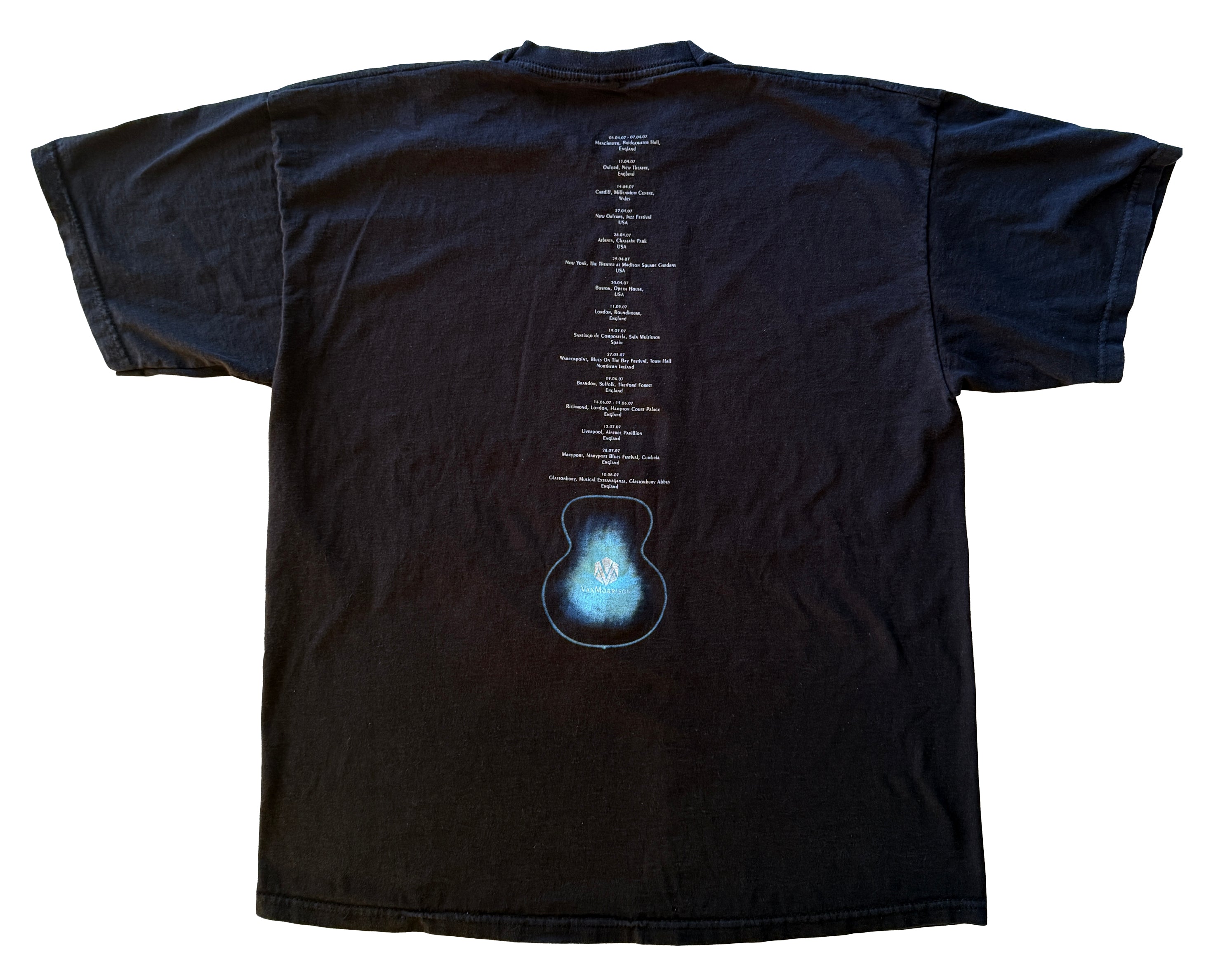 Carrying the cool, understated vibe that Van Morrison is known for, this 2007 World Tour tee is a soft black cotton piece with a clean, moody graphic on the front. The portrait artwork uses icy blue tones and subtle reflection details, giving it that classic early-2000s concert-merch look — simple, bold, and designed to feel timeless rather than loud.