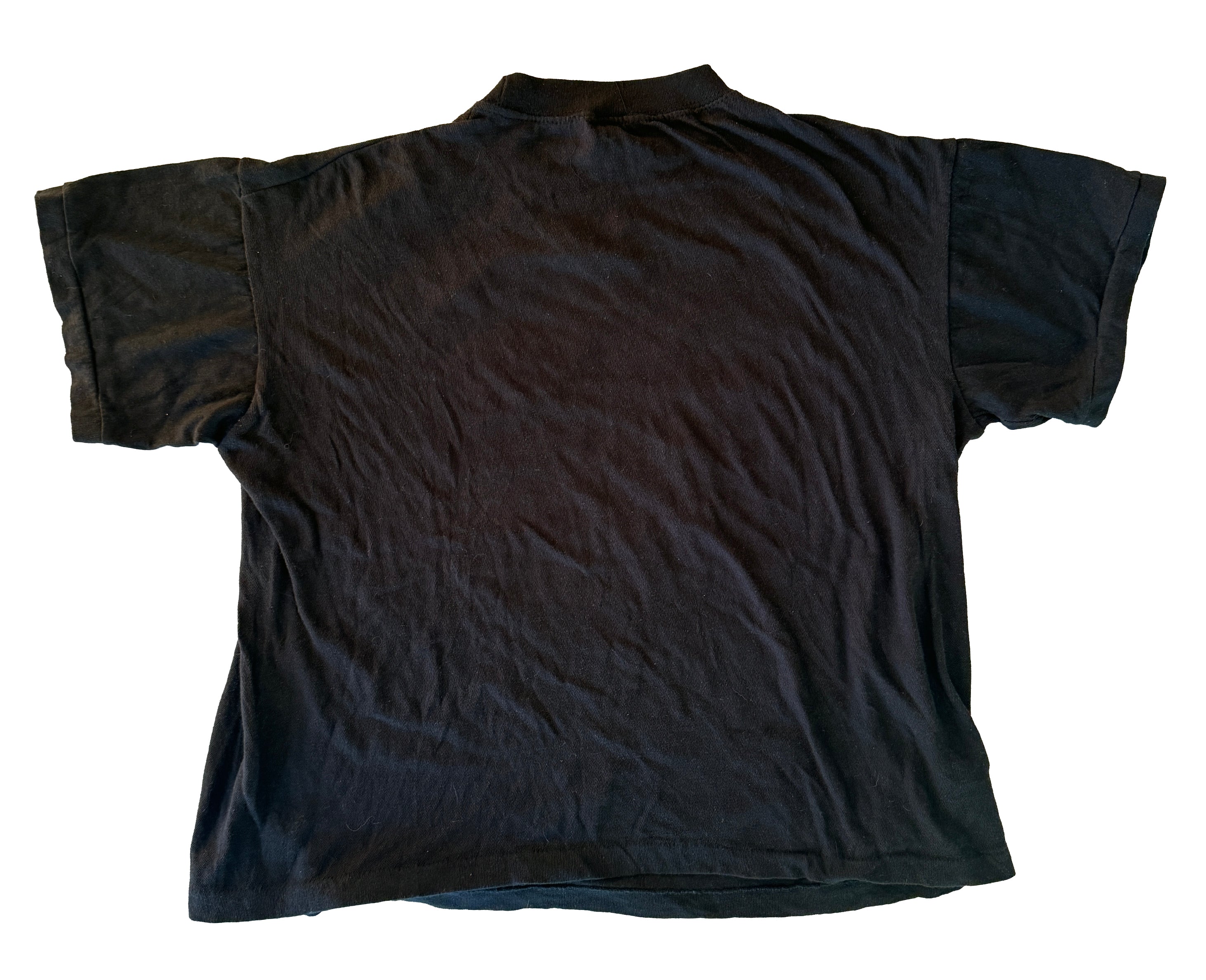 This vintage David Bowie Diamond Dogs Tour 1974 tee taps straight into one of the most dramatic, theatrical moments of Bowie’s career. The front artwork captures the dystopian, neon-lit chaos of the Diamond Dogs era — a period where Bowie was shifting away from Ziggy Stardust and into something darker, stranger, and inspired by Orwell’s 1984. The cracked, worn-in graphic looks incredible on this one; the kind of natural ageing that only decades of life can create.