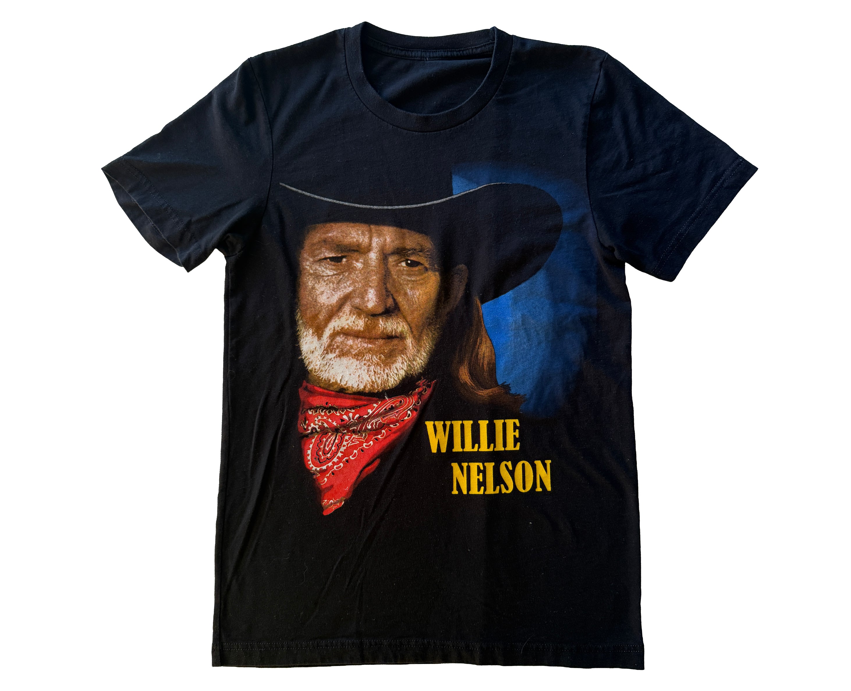 Carrying the warmth, grit, and unmistakable charm of a true American icon, this Willie Nelson A Beautiful Time 2022 tour tee is a standout from his later-era concert merch. The front features a vivid, full-colour portrait of Willie in his trademark hat and red bandana — a proper, no-frills graphic that feels classic and instantly recognisable.